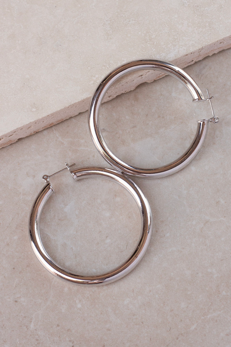 The Amalfi Tube Hoops are a classic pair of large hollow and lightweight metal earrings that are perfect for everyday wear!