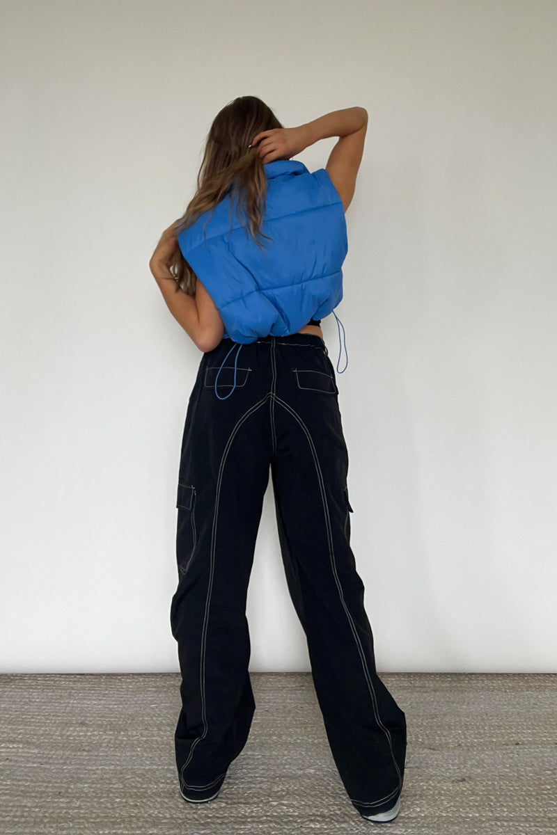 Parachute pants are a must have this season! The Lydia Contrast Seam Parachute Pants feature adjustable drawstrings at the ankles, a high rise fit, and contrast stitching. Pair with the for the ultimate streetwear look.